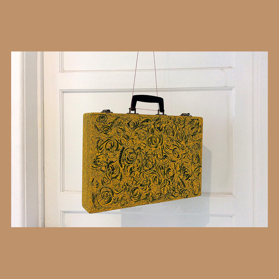 Diagrama de rosas. 2018. Óleo sobre estuche de madera para óleos de 1985.</br>10.62" x 15.35" x 2.75" (27 x 39 x 7 cm)