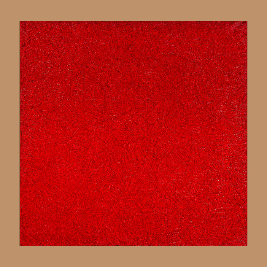 Diagrama escarlata. 2018. Óleo sobre tablero de madera. 59.05" x 59.05" (150 x 150 cm)